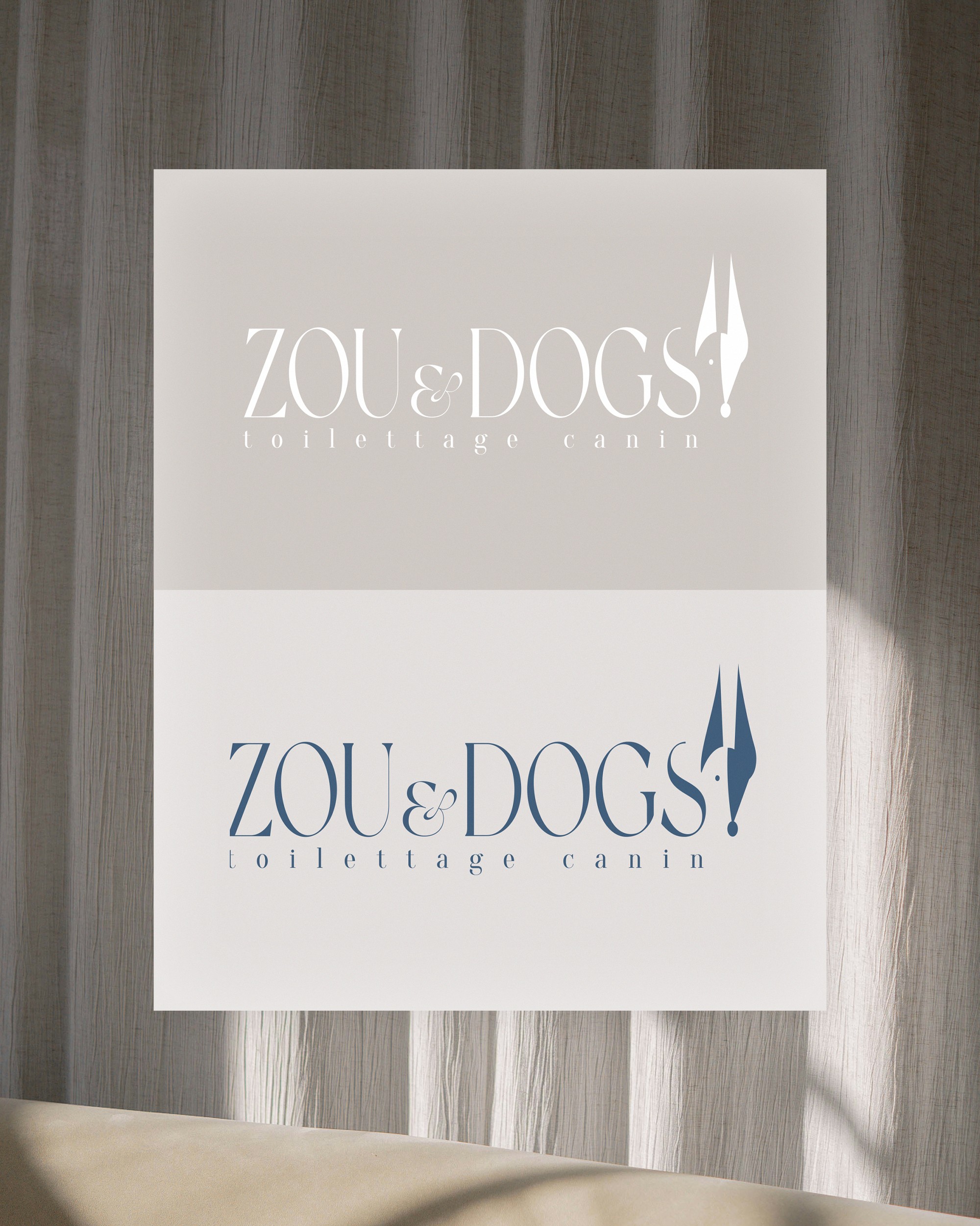 Visual identity created for Zou & Dogs, a dog grooming salon in Walhain. Simple and elegant with a slight eccentric touch.
